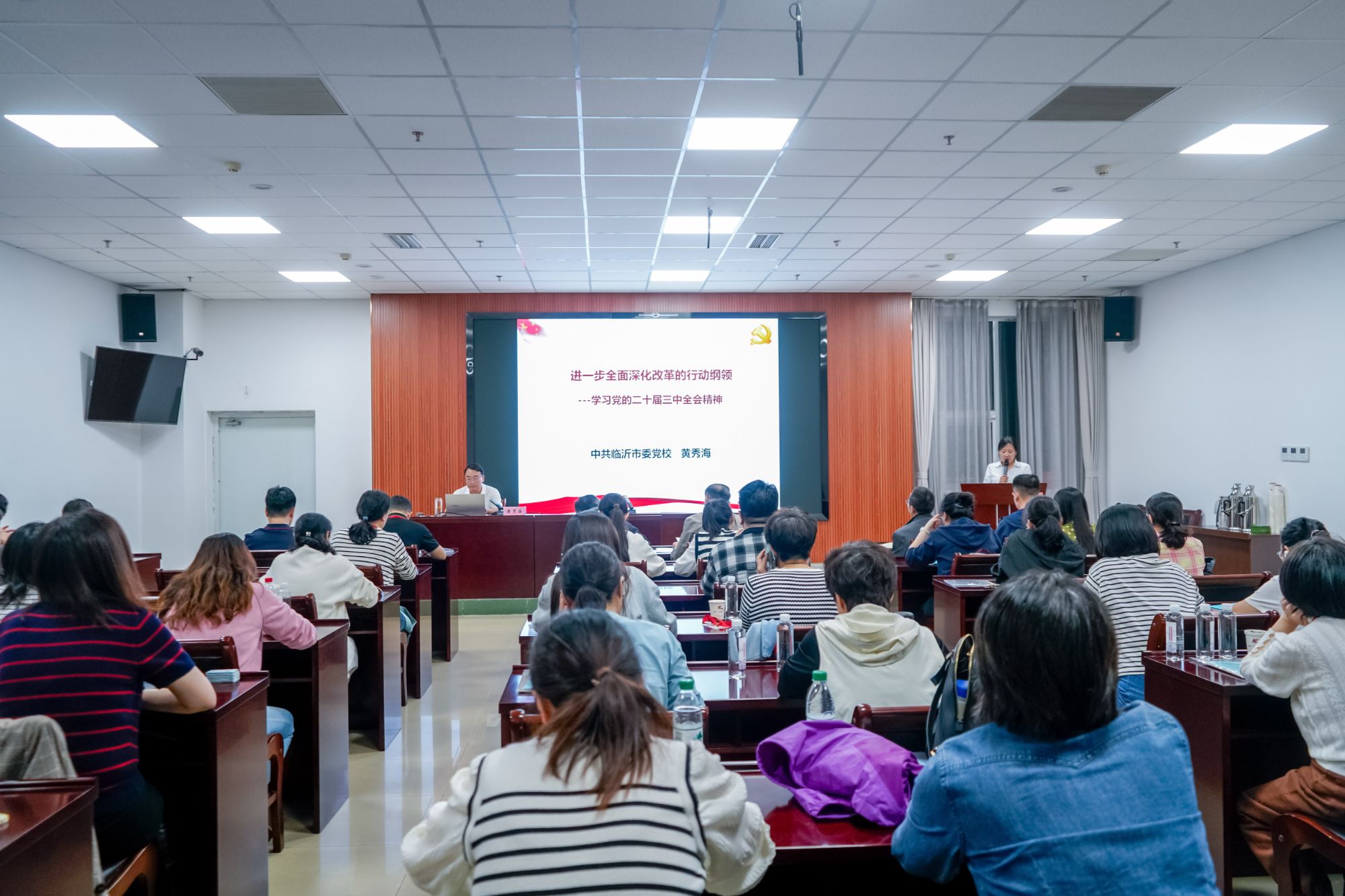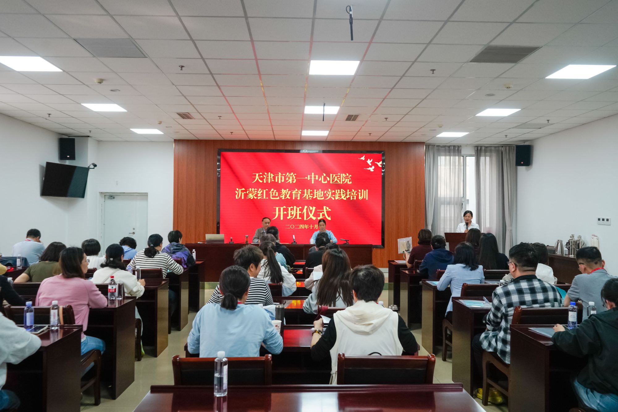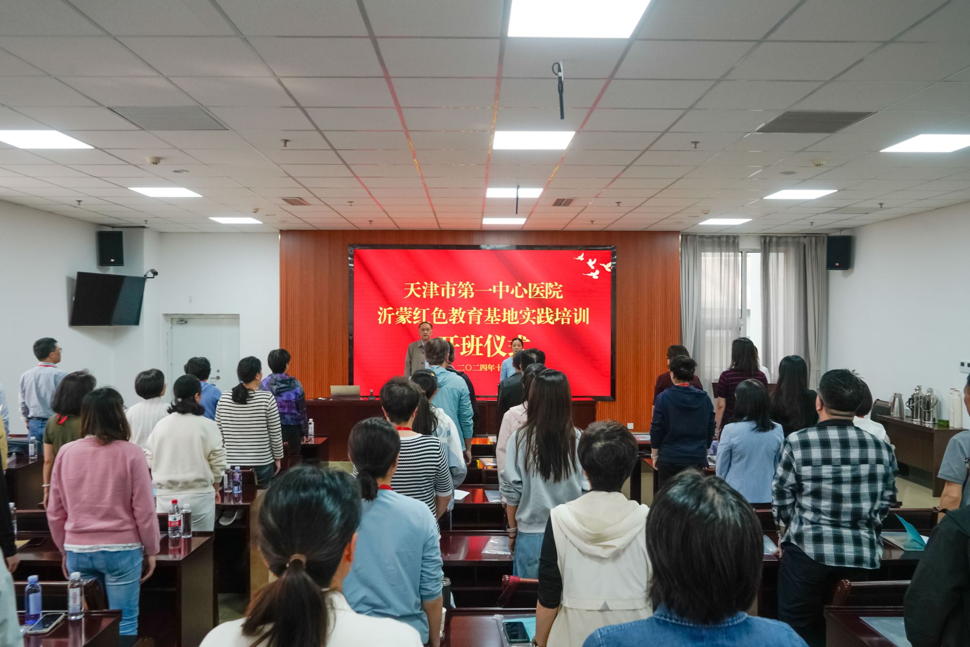 为扎实做好党员发展工作,贯彻落实新时代党的建设总要求,确保党员发展质量的需要,10月10日下午,天津市第一中心医院党委副书记王非亲自带队,引领近50名学员前往临沂市兰山区委党校,参与天津市第一中心医院沂蒙红色教育基地培训开班式,中共兰山区委党校校委会成员副校长李凤英出席本次活动并致辞。 会议第一项,全体起立,奏唱国歌。全体学员庄严肃立,在嘹亮的国歌声中,开班仪式正式拉开序幕。 随后,李凤英副校长发表了热情洋溢的开班致辞。她首先对天津市第一中心医院的到来表示热烈欢迎,并高度赞扬了医院党委对党员教育工作的重视与投入。李副校长强调,沂蒙精神是党和国家的宝贵精神财富,希望全体学员能够珍惜这次难得的学习机会,深入领悟沂蒙精神的深刻内涵,不断提升自身的政治素养和业务能力。 王非副书记作开班动员讲话,明确指出本次培训是一次难得的学习机会,也是一次与沂蒙精神对话、追寻初心使命的机会。希望大家认真听讲、深思笃学,深刻领悟沂蒙精神的丰富内涵和时代价值,不断提升自我,提升我们的政治素养、管理能力与执行力,不断在工作岗位上,率先垂范,认真履职,为促进医疗事业发展做出新贡献。 最后,全体合影留念。 开班式结束后,学员们去往银雀山汉墓竹简博物馆和临沂市规划展览馆进行现场教学,从历史中深切体味兵学智慧,感受城市厚重底蕴,在规划引领老区崛起的生动实践中激发时代担当。 晚上,临沂市委党校经济学教研部主任,黄秀海教授为全体学员讲授《进一步全面深化改革的行动纲领---学习党的二十届三中全会精神》专题教学。教学内容深入浅出,既有理论阐述,又有实践分析,使学员们对党的最新政策有了更加深入的理解,进一步坚定了党员干部的政治立场和理想信念。 此次培训为期3天,培训班通过专题讲座、现场教学、情景教学等多种形式开展教学活动,培训主题鲜明、形式多样,节奏紧凑,带领学员深入学习领悟沂蒙精神的丰富内涵,进一步坚定理想信念,提高党性修养。